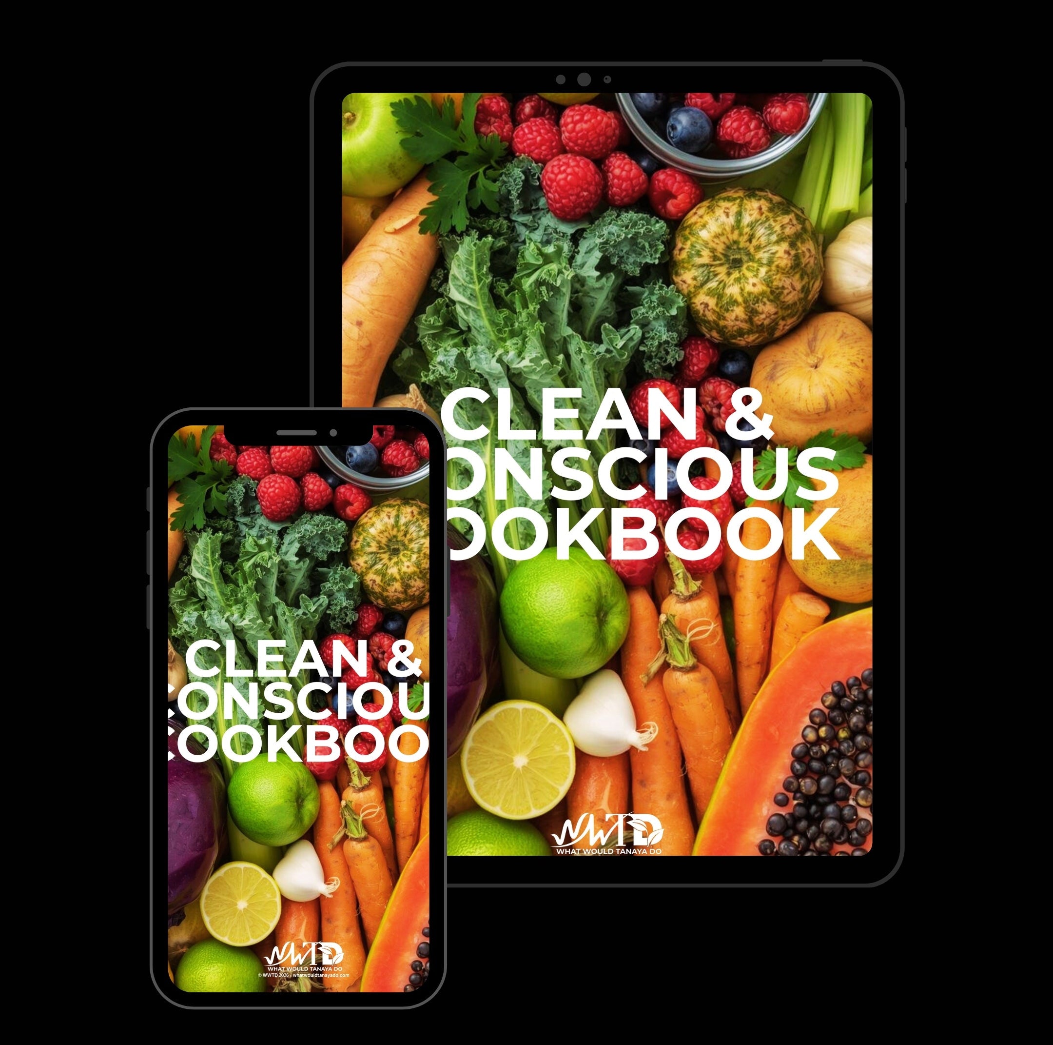 WWTD Clean & Conscious Cookbook contains 111 pages of breakfasts, lunches, dinners, snacks, & simple substitutions designed to support digestion, balanced blood sugar, and elimination — without overthinking.